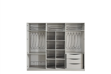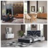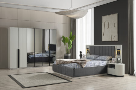 Gardırop, bazalı karyola, şifonyer, ayna, 2 komodin.