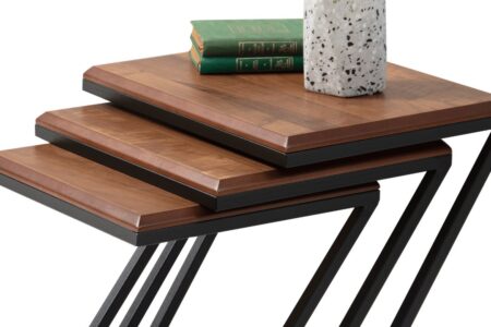 Yer tasarrufu sağlayan iç içe geçebilir sehpa yapısıyla pratik kullanım sunar.