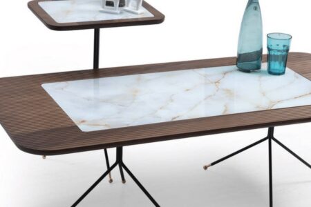 Kütük Ceviz Metal Ayak Orta Sehpa