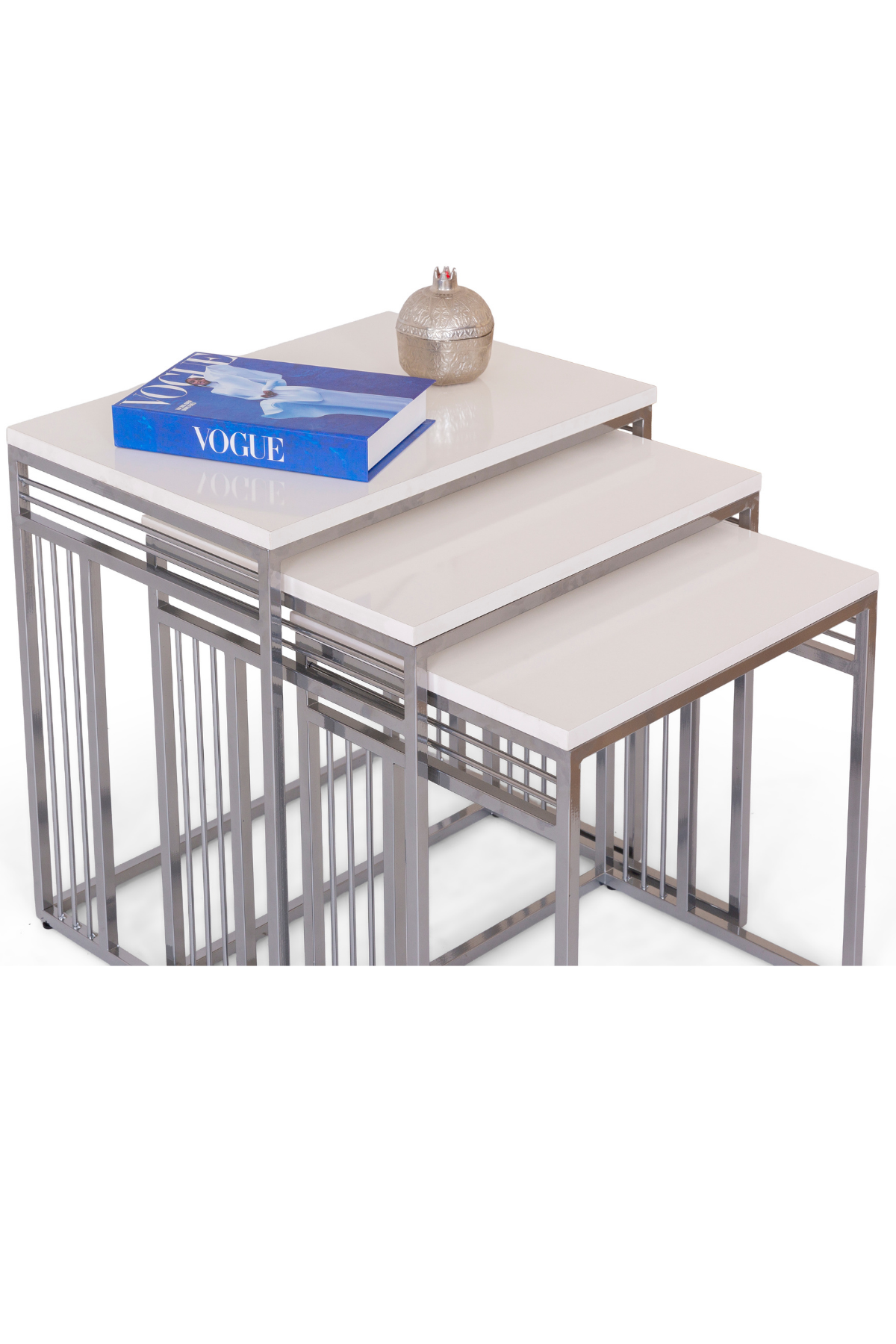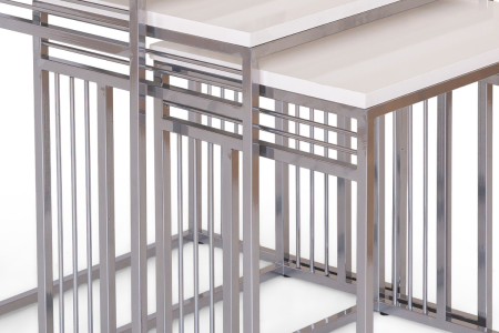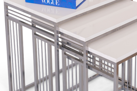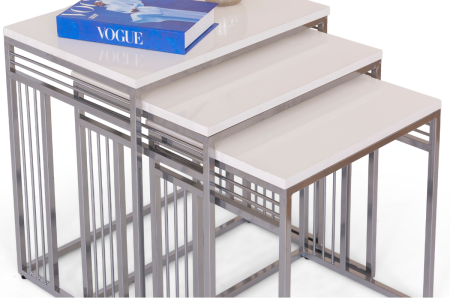 Mobievim Milano Krem Üst Tablalı Zigon Sehpa Seti – 3’lü Modern Sehpa Takımı, Gümüş Metal Ayaklı