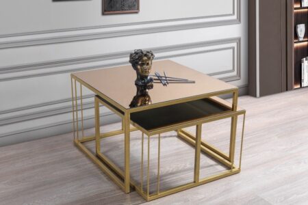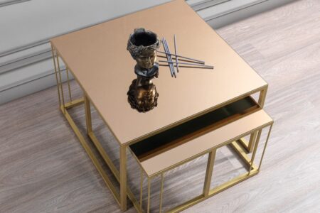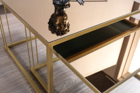 Siena Gold Metal Ayaklı Bronz Aynalı Orta Sehpa Takımı
