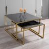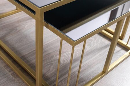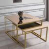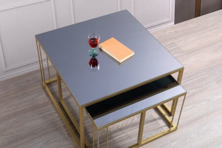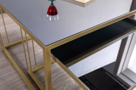 Siena Gold Metal Ayaklı Füme Aynalı Orta Sehpa Takımı